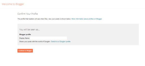The “display name” is like your username. It is just like the name you use on facebook. So type the name of your choice then click “continue to blogger”