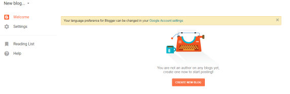 After getting to this point, you might find a notice on European Union laws on cookies and data you collect from your blog’s viewers. You can ignore it for now but make sure you get back to it later. It is important. Click “CREATE NEW BLOG” to continue.
