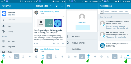 You can open the reader section. This will enable you to view blogs that you follow.you can click the “add new post ” button to publish a new post or the “Me” button to view your profile. Here you can also do some configuration on your account and app if need be. You may ant to check the notifications. You can open them by clicking the small bell icon at the bottom right side of your app. The notifications may include recent comments or notifications of posts you have just published.
