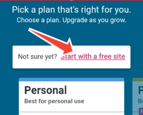 Make sure to choose the one with a wordpress.com or blog.com because it free. You can upgrade later if you like. You will then be taken to a page where you will select the free option as your plan.